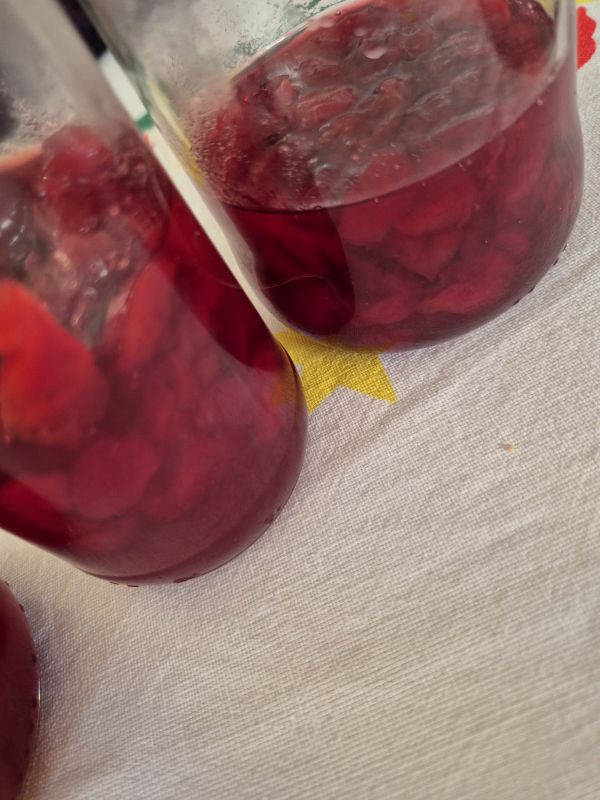 Me and Tofi made cherry jam as gifts for our family. We've never made jam before, so it was a bit of an adventure, especially since we didn't know if it turned out well until it'd gotten cold. But it did! The flavour was very strong, you could definitely taste the cherries.