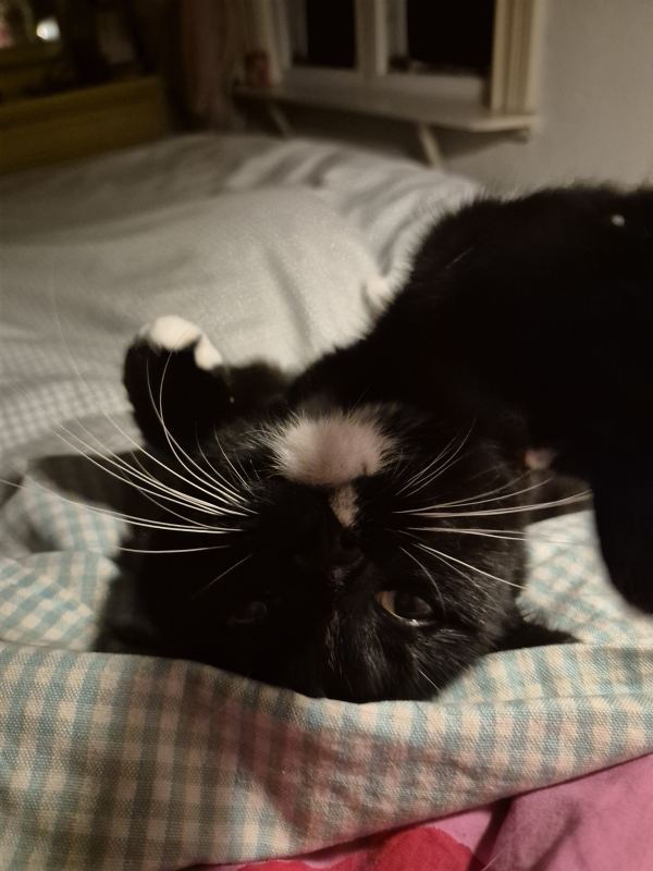 Kalma really likes napping on the piano stool, and I finally managed to catch Njord on camera when she reaches out to pet me back. She likes to cuddle a lot, and will often reach out to pat my face back, since I do it so much for her.